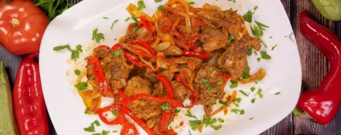 Priprema se jednostavno i brzo; da biste to učinili, pržite pileću jetru s paprikom, lukom i pirjajte 15-20 minuta. Poslužite uz rižu, krumpir ili tjesteninu.